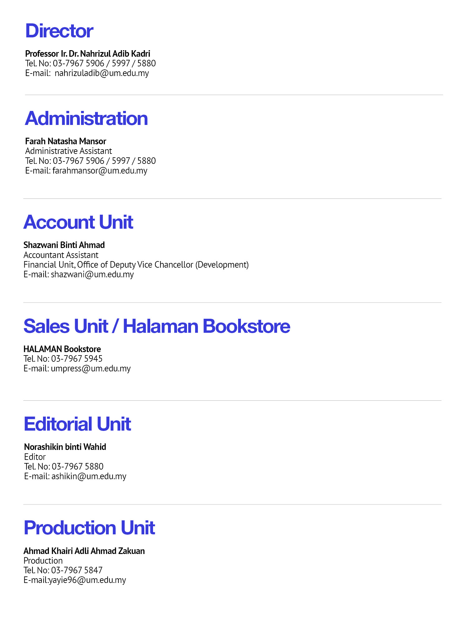 Staff Directory